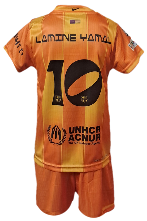 پیراهن و شورت باشگاهی دوم بارسلونا یامال نارنجی نونهال و نوجوان